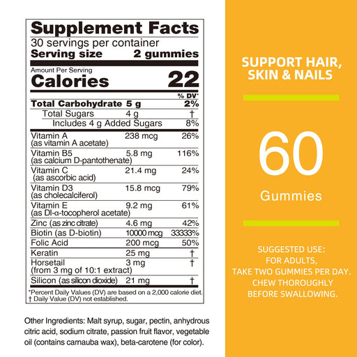 Each gummy delivers 10000 mcg of high-potency biotin to nourish hair follicles, strengthen nail cuticles, and boost skin hydration. Effectively ad...